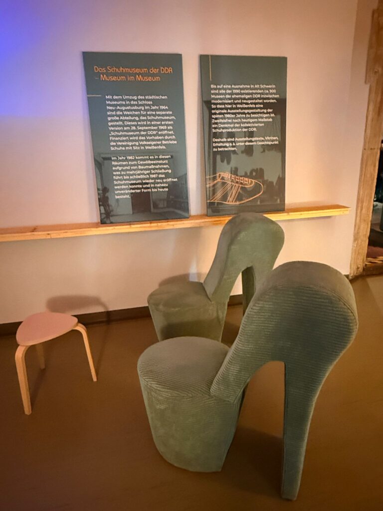 Unser erstes Ziel führte uns nach Weißenfels. Nach einer gemeinsamen Stärkung vor Ort stand die Besichtigung der dortigen Schuhausstellung auf dem Programm, die uns einen faszinierenden Einblick in die regionale Industriegeschichte gab.