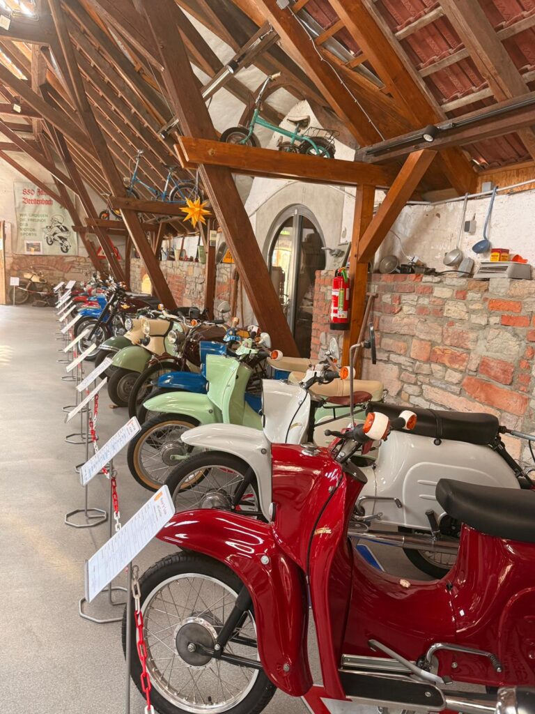 Vor Ort hatten wir die Wahl: Während ein Großteil der Gruppe das Motorrad- und Technikmuseum erkundete, nutzte der ein oder andere die Zeit für eine Burg- und Turmbesteigung sowie einen Spaziergang durch die Reithalle und das weitläufige Gelände.